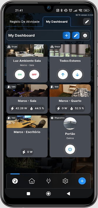 Instalo interruptores, tomadas e outros equipamentos inteligentes que se ligam à sua rede Wi-Fi. Também consigo transformar equipamentos que já tem, como estores, portões ou iluminação, em sistemas inteligentes, usando relés Wi-Fi que permitem controlar tudo a partir do seu telemóvel.