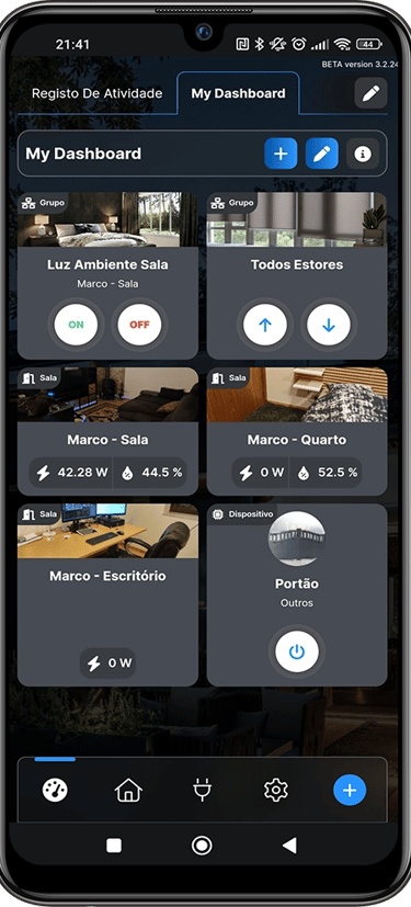 Instalo interruptores, tomadas e outros equipamentos inteligentes que se ligam à sua rede Wi-Fi. Também consigo transformar equipamentos que já tem, como estores, portões ou iluminação, em sistemas inteligentes, usando relés Wi-Fi que permitem controlar tudo a partir do seu telemóvel.